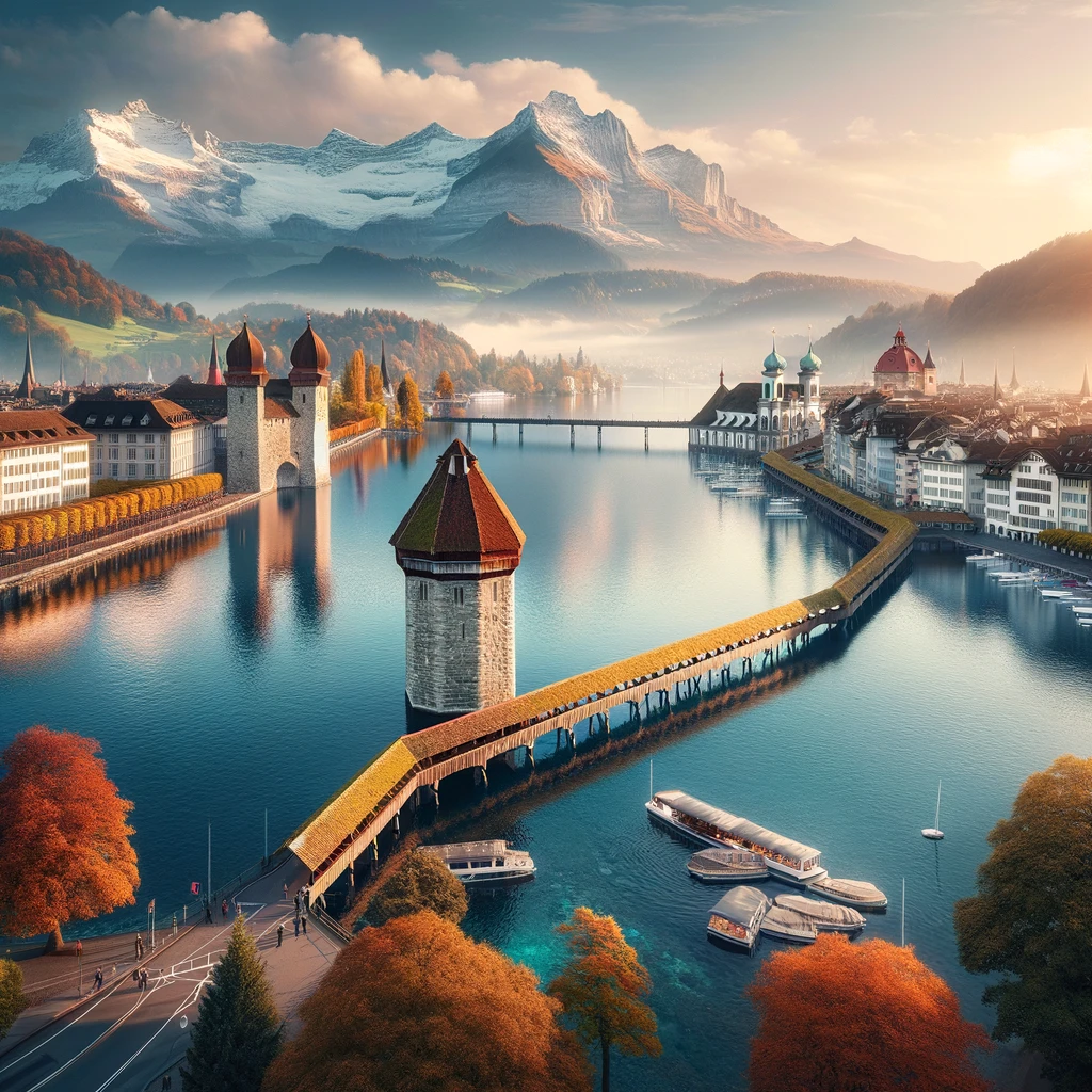 루체른은 아름다운 호수와 산, 그리고 고풍스러운 건축물이 조화를 이루는 도시로, 스위스의 중세 유럽 분위기를 만끽할 수 있습니다. 대표적인 관광지로는 카펠교와 무제크 타워, 필라투스 산과 리기 산이 있으며, 이곳에서는 산 정상에서 호수와 도시가 어우러진 절경을 감상할 수 있습니다. 특히 가을에는 단풍이 더해져 더욱 매력적인 풍경을 제공합니다.