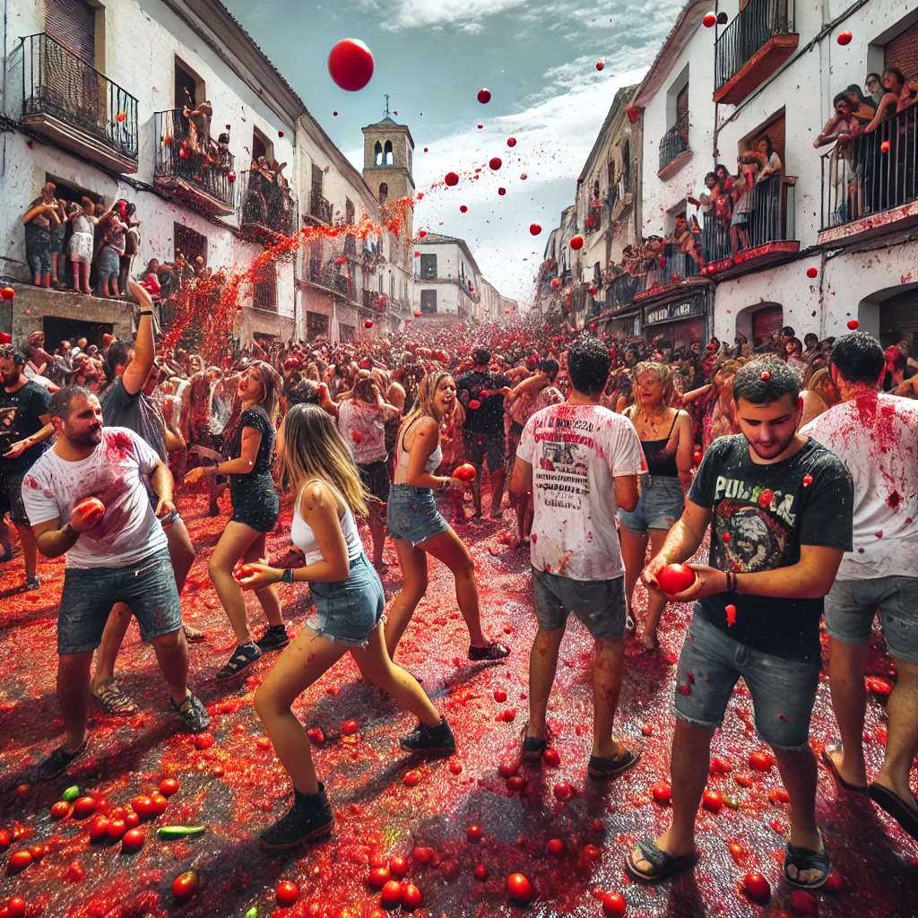 토마티나는 스페인의 전통적인 놀이에서 시작되어 이제는 전 세계적으로 유명한 축제로 자리 잡았습니다. 이 축제는 토마토를 던지는 대규모 놀이로, 부뇰의 좁은 거리에서 수천 명이 참여하며 펼쳐지는 스펙터클한 장면이 특징입니다. 참가자들은 토마토 던지기를 통해 스트레스를 해소하고, 현지 주민들과 함께 스페인의 열정과 유머를 공유하는 독특한 기회를 얻습니다.