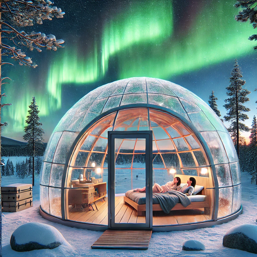 핀란드 라플란드의 캐빈들은 겨울철 오로라를 감상하기에 더없이 좋은 곳으로, 유리 천장을 갖춘 이글루 스타일의 숙소가 유명합니다. 침대에 누운 채로 밤하늘의 오로라를 바라보는 경험은 평생 잊을 수 없는 추억이 될 것입니다. 또한, 이곳에서는 눈썰매, 순록 사파리, 스노모빌 투어 등 다양한 겨울 액티비티도 즐길 수 있습니다.