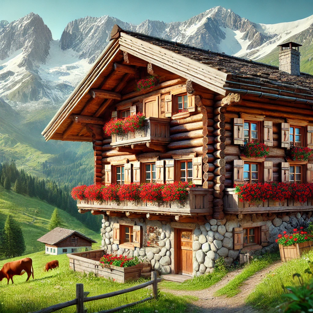 알프스 산맥의 전통 목조 캐빈